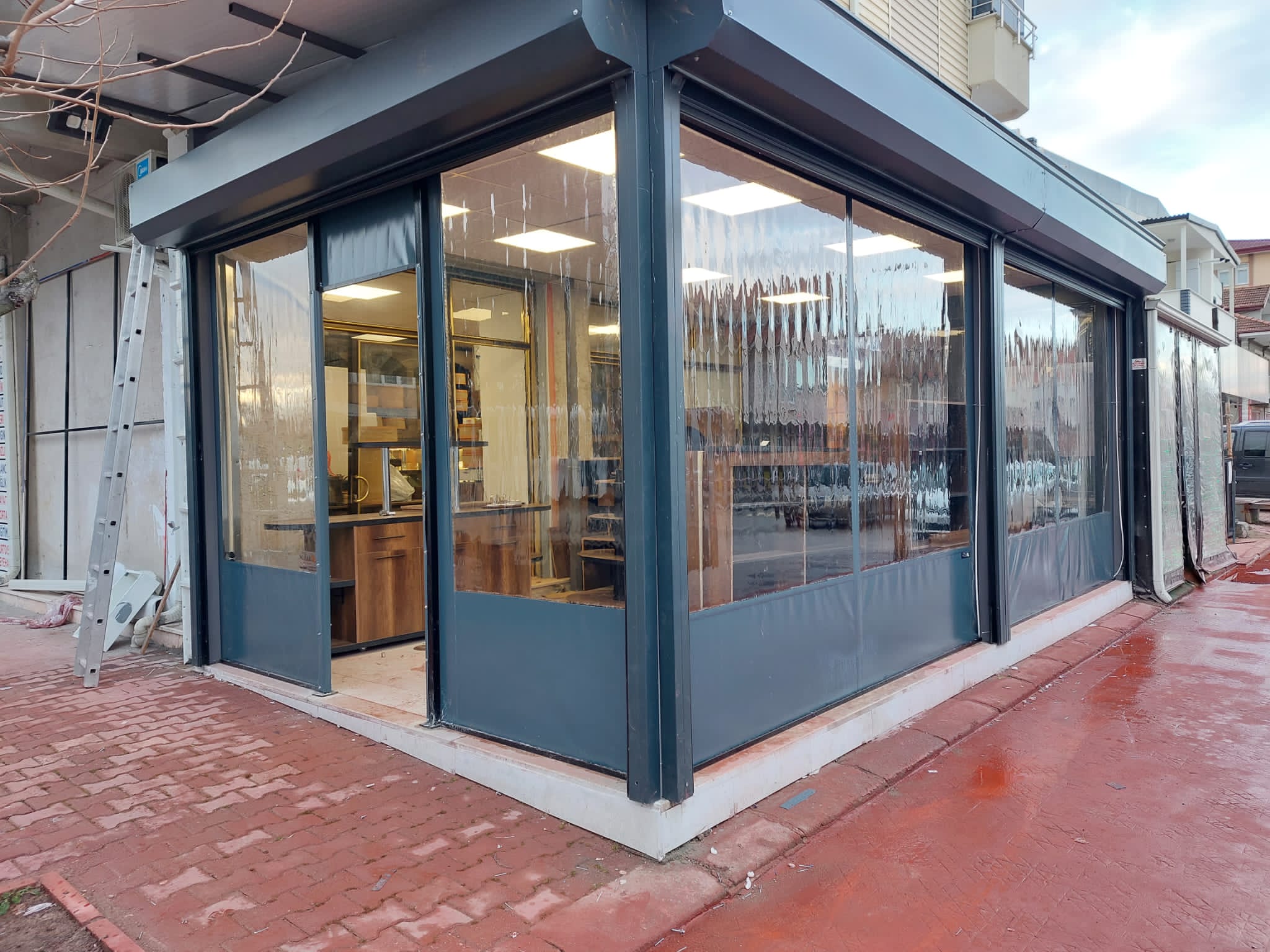 Dükkanımızın Ön cephesine güneşlik tarzında bir tente yaptırdık. Altında ürünlerimizi sergileyeceğimiz bir de alan açmış olduk. Teşekkür ederim.